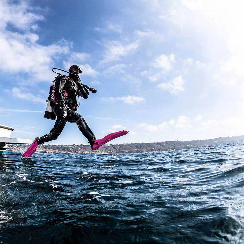 SCUBAPRO’s GO Sport fin features a “boot-fit” design, enabling divers who wear boots when giant-striding into cold water or negotiating rocky shore entries to benefit from the proven kicking performance of the original Tester’s Choice-awarded “bare-fit” GO fin. Lightweight yet virtually indestructible, this fin is a fast and nimble performer in the water. The blade has been slightly revised from the original; it now provides mounting points to attach skegs that minimize sideslip and maximize stability. The self-adjusting bungee heel strap allows for a versatile fit. The strap also makes it easy to don and doff. The GO Sport is designed to fit in IATA carry-on compliant luggage, making it a great fin for both travel and local diving.