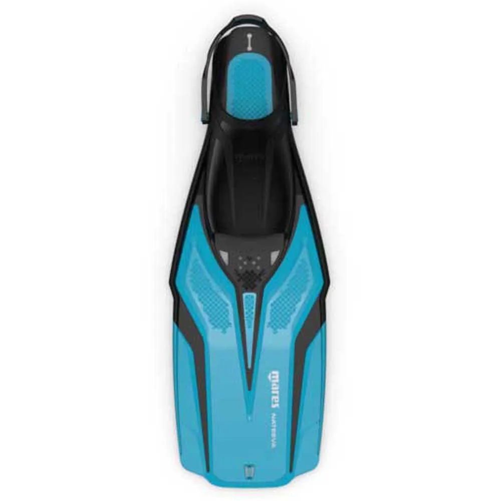 The Nateeva snorkelling fins have an open foot pocket. Their design is innovative and the foot pocket is soft and comfortable. Adjusting the fin strap is easy and intuitive. This system allows the fins to fit sizes from 30 to 47.