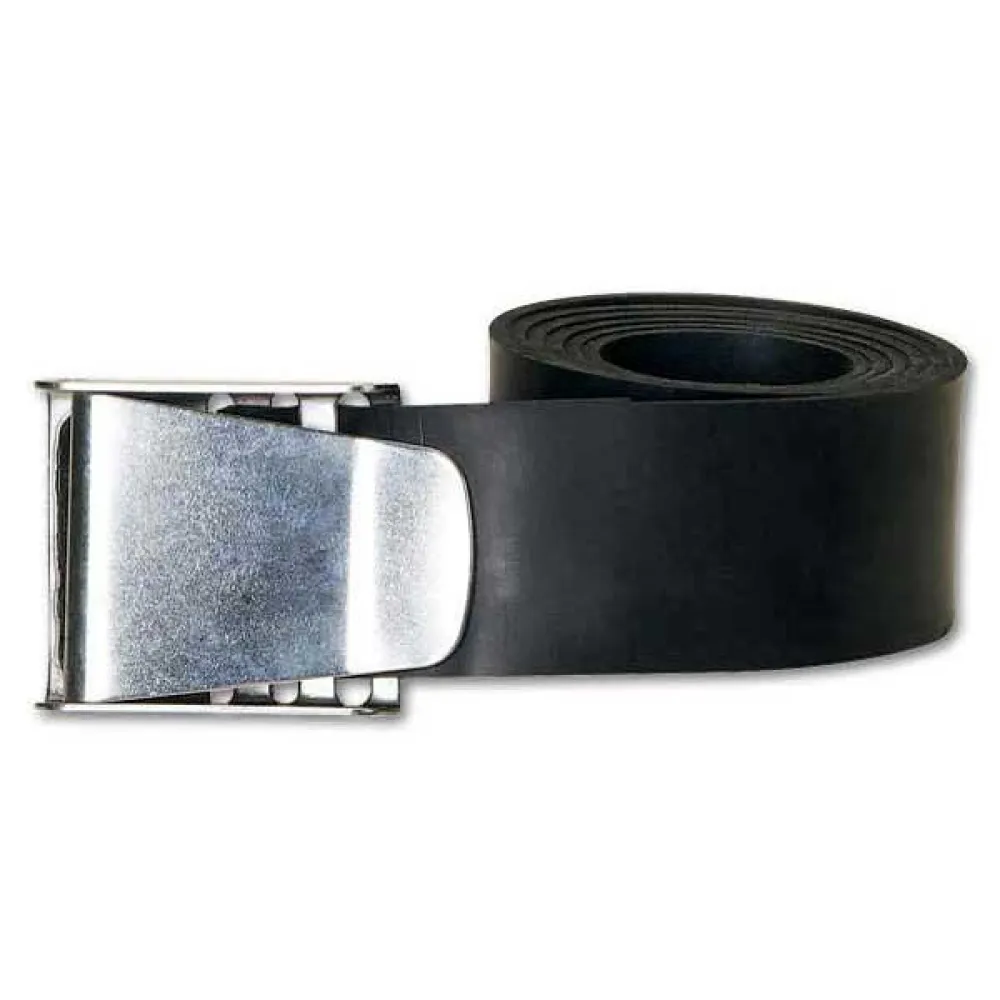 US type stainless steel buckle with stretchable high density neoprene belt keeping it close to the body during descent. In case of emergency the belt can be easly released.