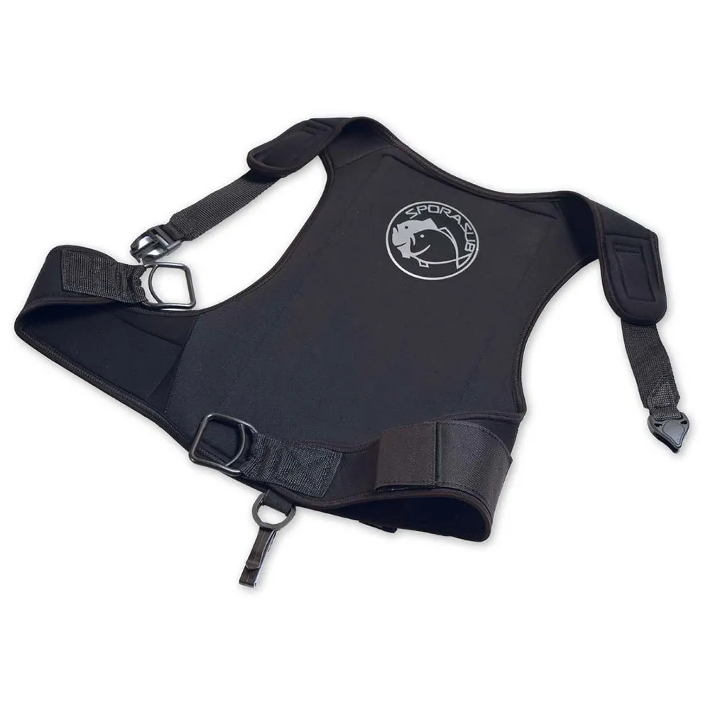 New back harness with featuring an innovative quick release system that allows to take it off it with a simple movement, greatly improving its safety.