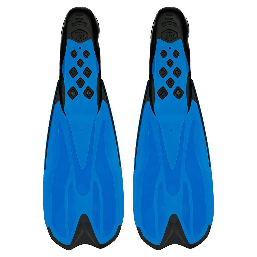 Set includes Spinta full-foot fins, a Bella silicone mask, and a Tribe snorkel with valve.