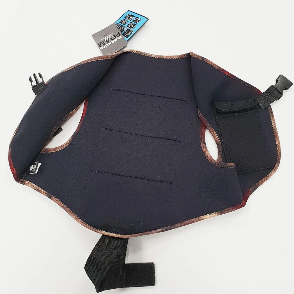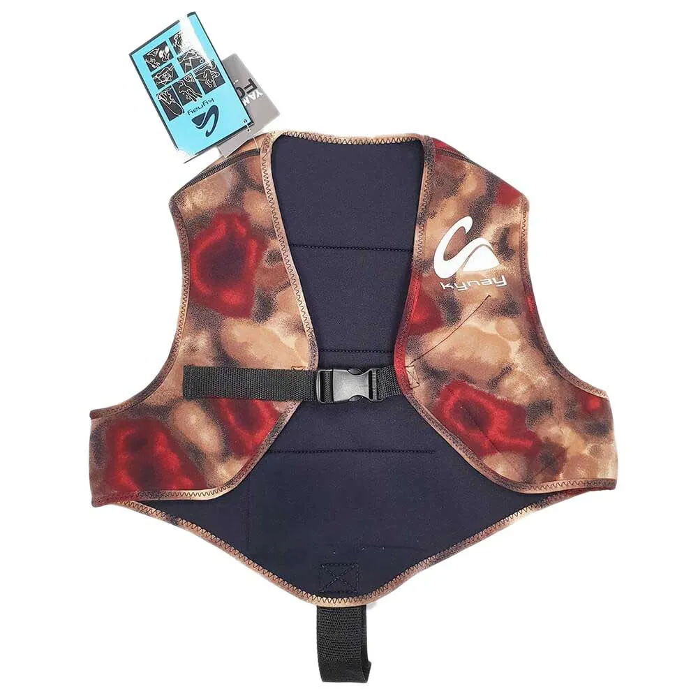 Kynay 3mm neoprene diving weight vest. Vest made of 3mm camouflaged stretch Yamamoto neoprene. Designed to put on and take off quickly and safely. It is comfortable, elastic and adapts to the body. With only two hooking points it can be quickly removed at any time. Capacity of 4Kg on the back with 1Kg plate weights, although it has the possibility of inserting weights of another format. On the chest it has another pocket where you can put some additional Kg.