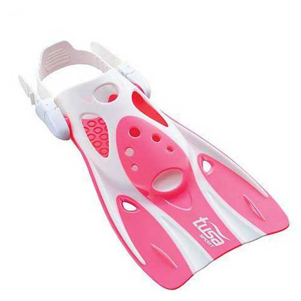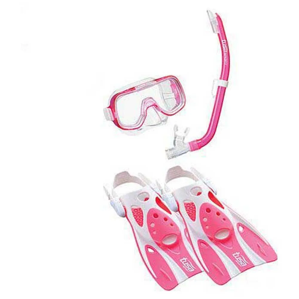 The Mini-Kleio Hyperdry Youth Travel Set Includes A Um-2000 Mask, Usp-140 Snorkel, And Uf0103 Fin. The Um-2000 Mask Is Designed For Maximum Field Of View. The Mask Features A High Quality Polycarbonate Frame, Ez Adjust Buckle Technology, And Clearvu Tempered Glass Lens. The Usp-140 Snorkel Features Tusa Hyperdry Technology That Reduces The Chance Of Water Flow Into The Snorkel. Snorkel Also Includes A Drain Chamber And Purge Valve For Easy Clearing, And A Silicone Mouthpiece. The Uf0103 Fins Are Exclusively Designed For Travel With A Short Blade Design, Soft Comfortable Open-Heel Foot Pocket, And Adjustable Silicone Strap. The Open-Heel Is Designed For Ease Of Entry And A Secure Fit.